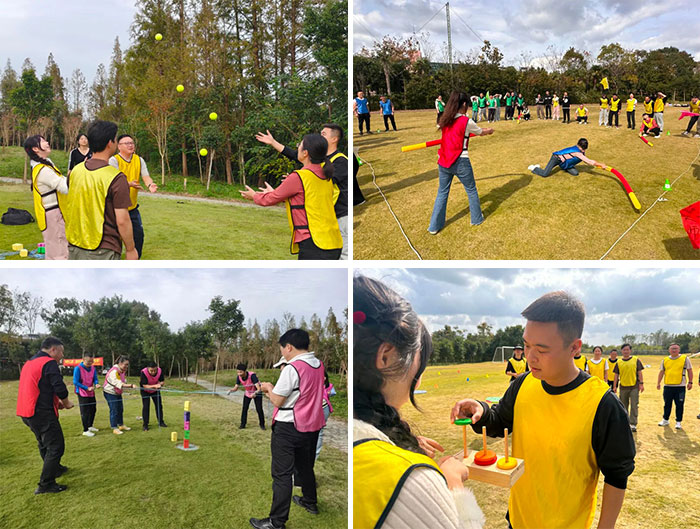 上午,大家怀着期待与兴奋的心情抵达太阳岛度假区,大自然的宁静与美好,让所有的疲惫都被抛诸脑后。随后,一场活力四溢的破冰热身环节热烈展开,同事们积极踊跃地参与其中,欢笑声、喝彩声交织在一起,在空气中久久回荡。通过一系列热身活动,大家被分成5个小组,每个小组都斗志昂扬,充满了必胜的信心。团队氛围也在不知不觉中得到了提升,更是为下午的真人大富翁游戏做足了准备。