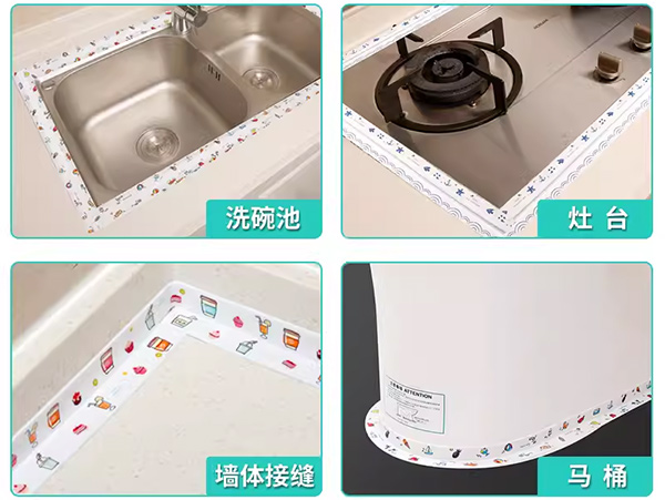 用于厨柜、浴缸、面盆、水槽边缘与墙壁、墙壁与墙壁之间的缝隙密封。